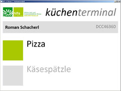 Im Küchenbereich zeigt ein Monitor unmittelbar vor der Essensausgabe an, welches Menü der jeweilige Schüler ausgesucht hat. Die Identifikation des Schülers erfolgt dabei berührungslos mittels Schülerausweis (RFID-Technologie).
